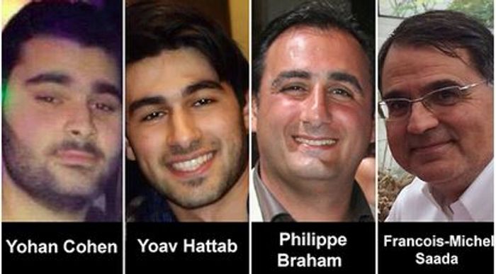 The four Jewish men murdered in the Hypercasher grocery store: Yohan Cohen, Yoav Hattab, Philippe Braham, and François-Michel Saada.